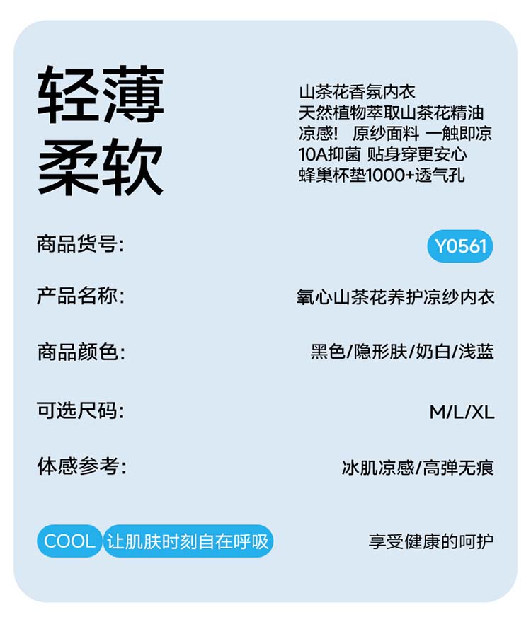 氧心山茶花养护凉纱内衣